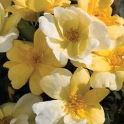 Bright yellow flowers that fade quickly to a pastel cream color. The yellow color stays more intense during cooler times of the year. The dark, semi-glossy foliage contrasts nicely with the bright blooms. Exceptional disease resistance.(SHR)